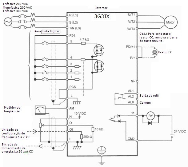 Inversor de frequência Série 3G3JX de Controle Escalar, Série de Inversores para aplicações gerais simples.